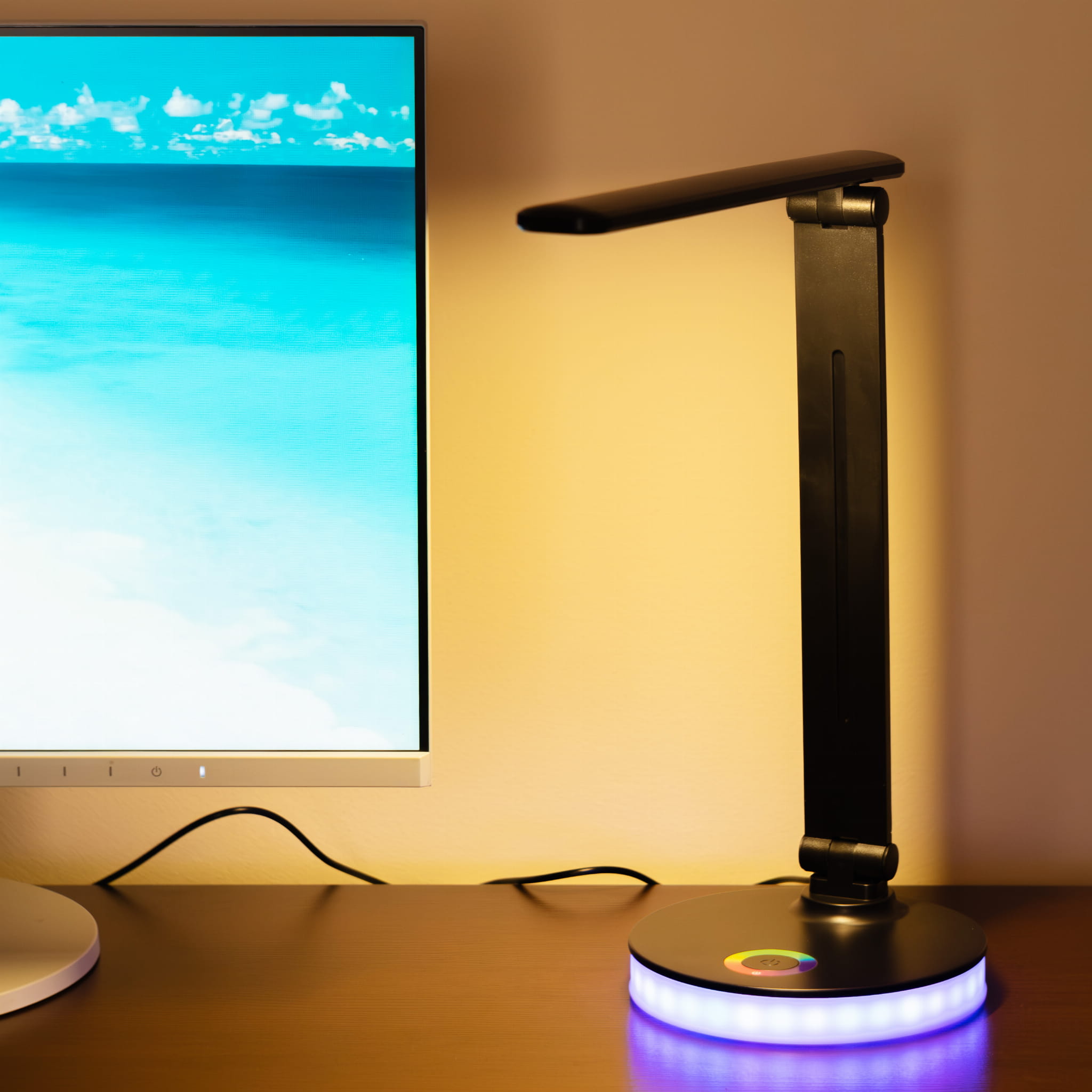 Regulowane ramię pozwala na precyzyjne ustawienie źródła światła, a neutralna barwa 4000K wspiera koncentrację bez przeciążania wzroku. A potem? Jeden ruch palcem po kolorowym pierścieniu w podstawie i Twój kącik pracy zamienia się w atmosferyczną przestrzeń do wieczornego odpoczynku.