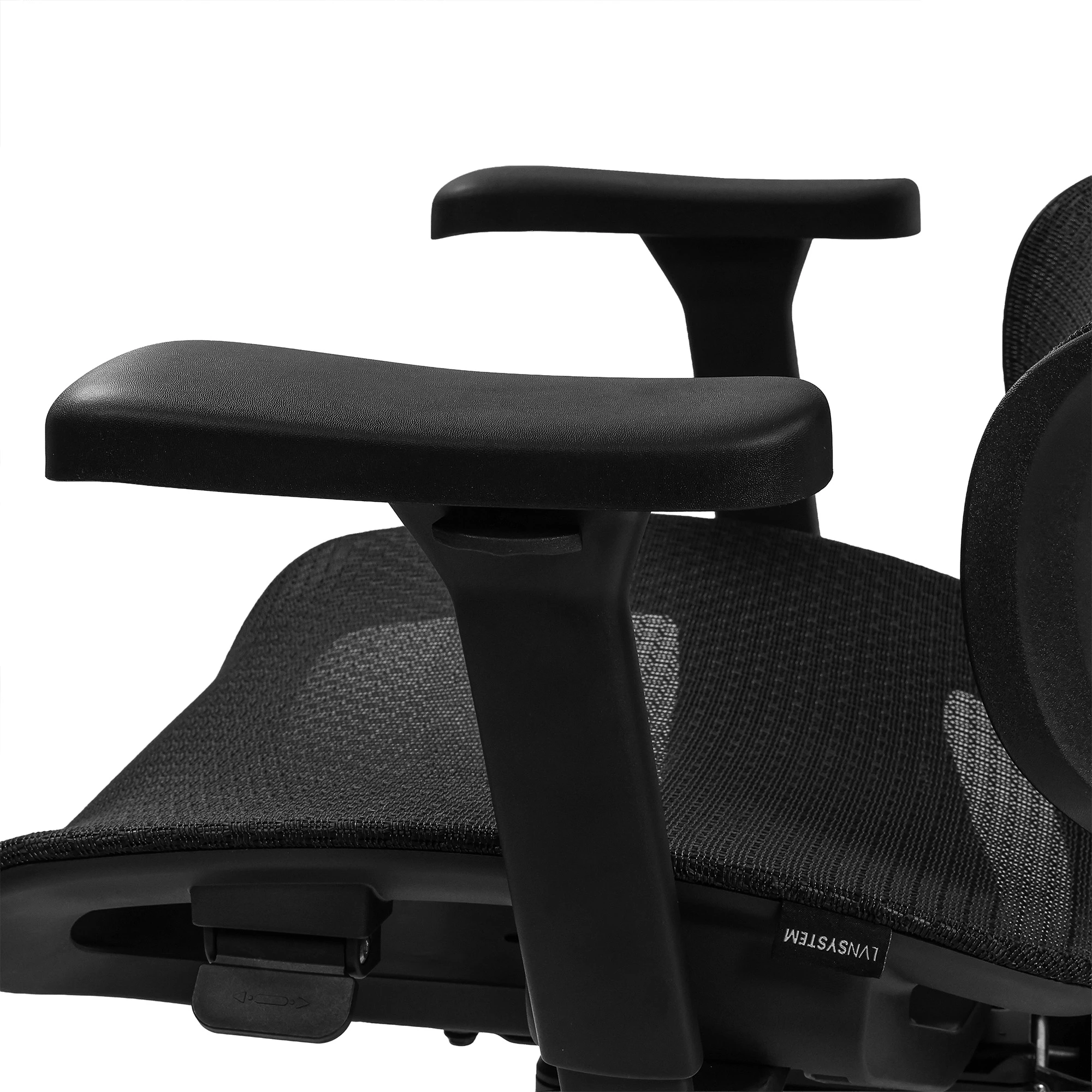 Podłokietniki 3D z opcją składania pozwalają na pełne dosunięcie fotela do blatu, oszczędzając przestrzeń.