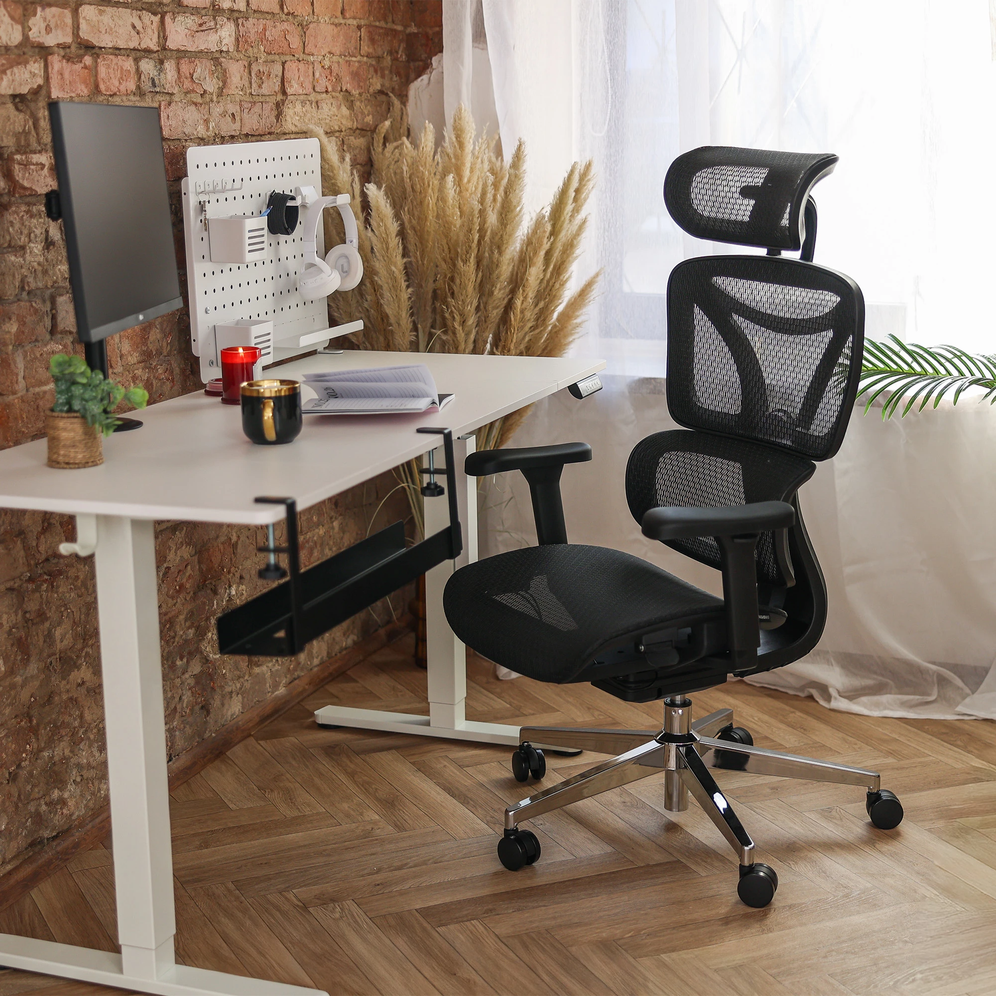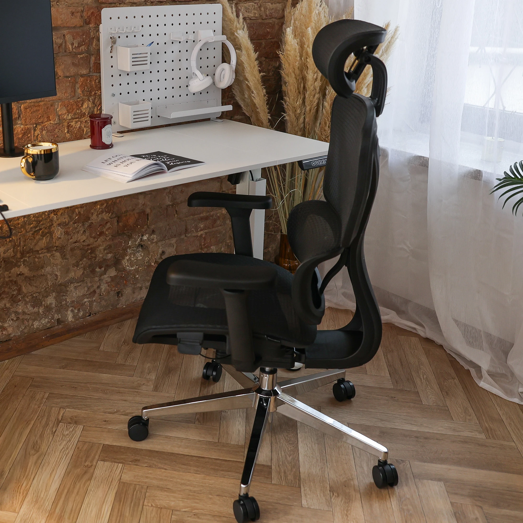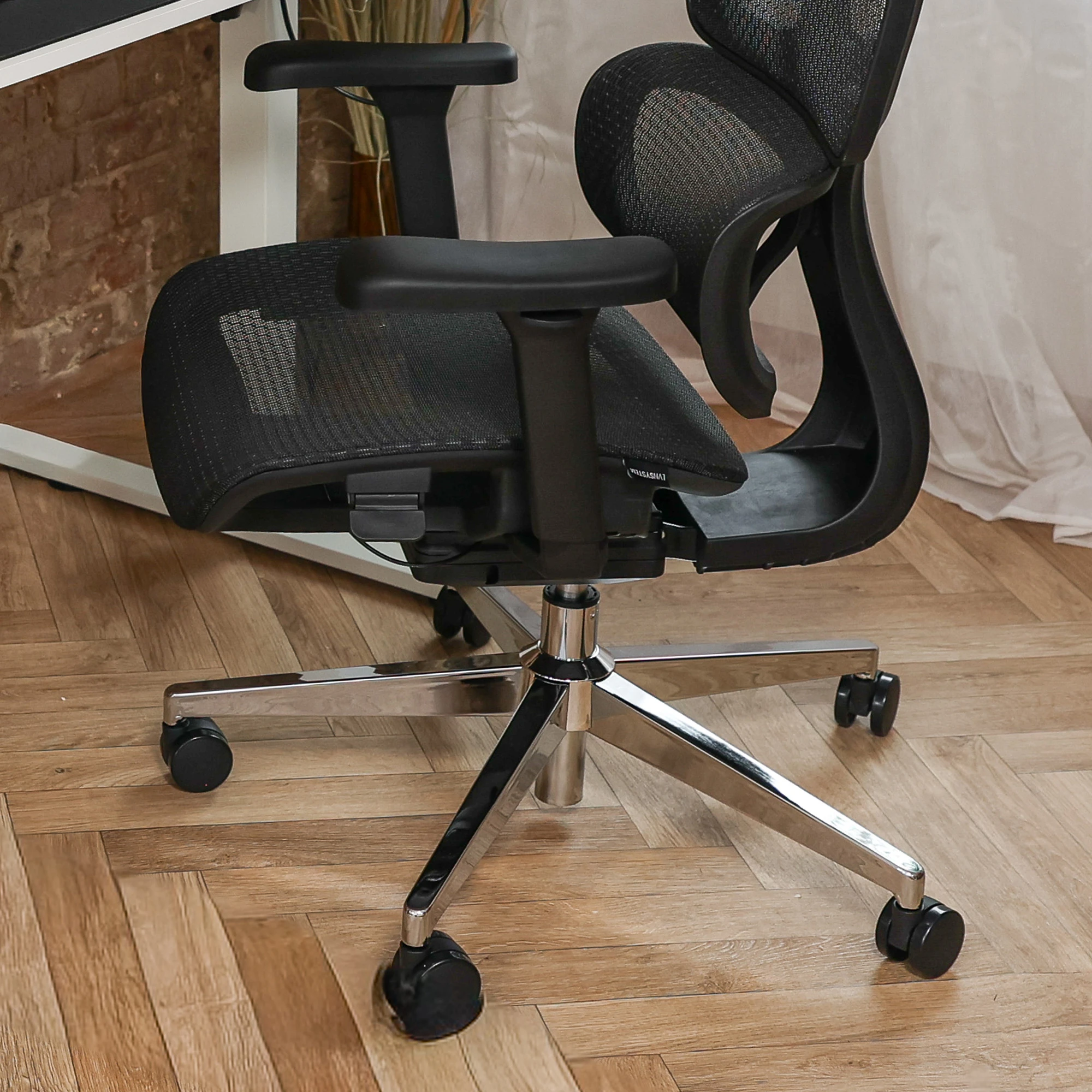 Zaawansowany fotel biurowy z aktywnym wsparciem lędźwiowym, regulowanymi podłokietnikami 3D oraz przewiewną siatką mesh dla pełnego komfortu pracy.