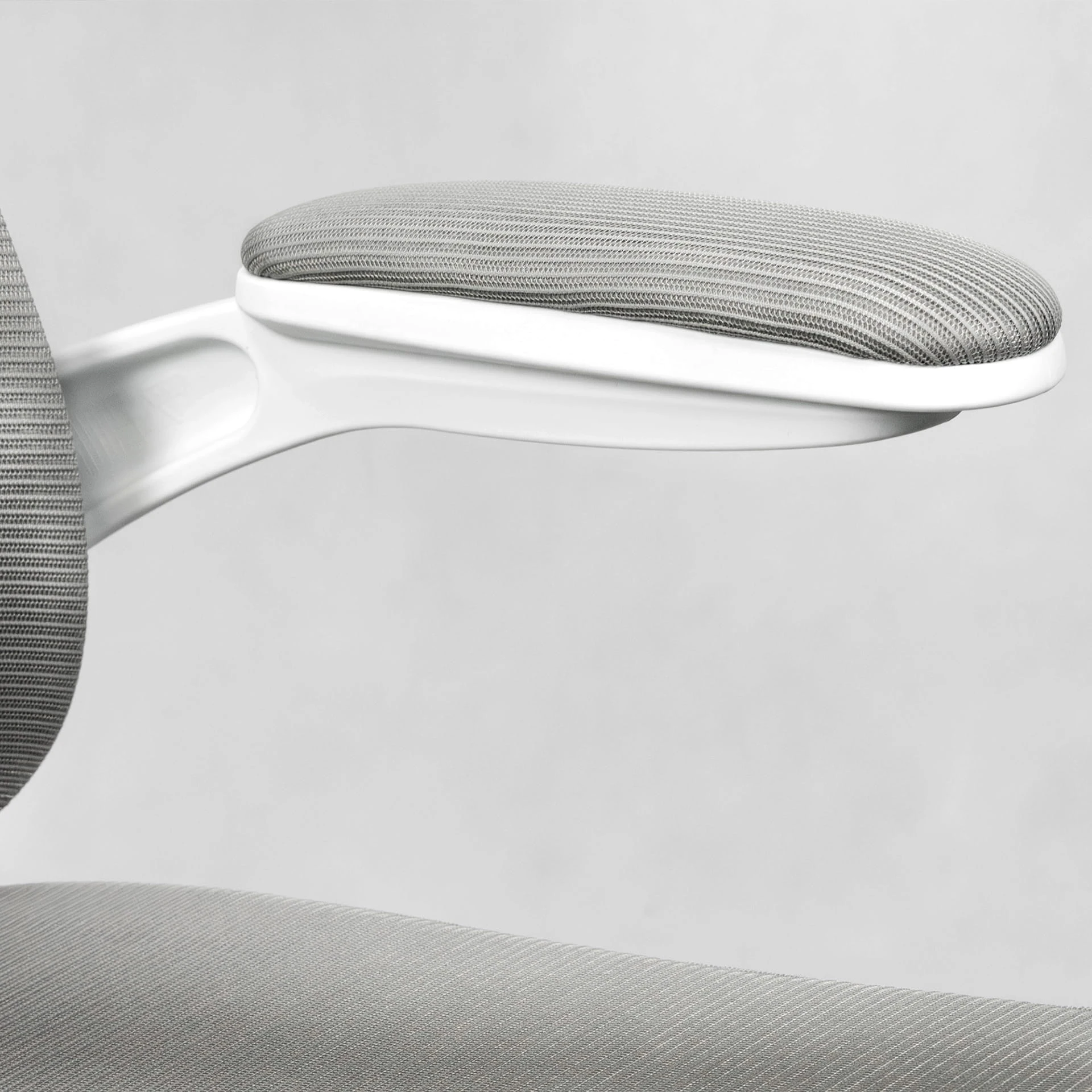 Składane podłokietniki umożliwiają głębokie dosunięcie fotela do blatu, oszczędzając przestrzeń. Mechanizm TILT zapewnia swobodę ruchów, a możliwość blokady oparcia pozwala na pełne skupienie podczas zadań.