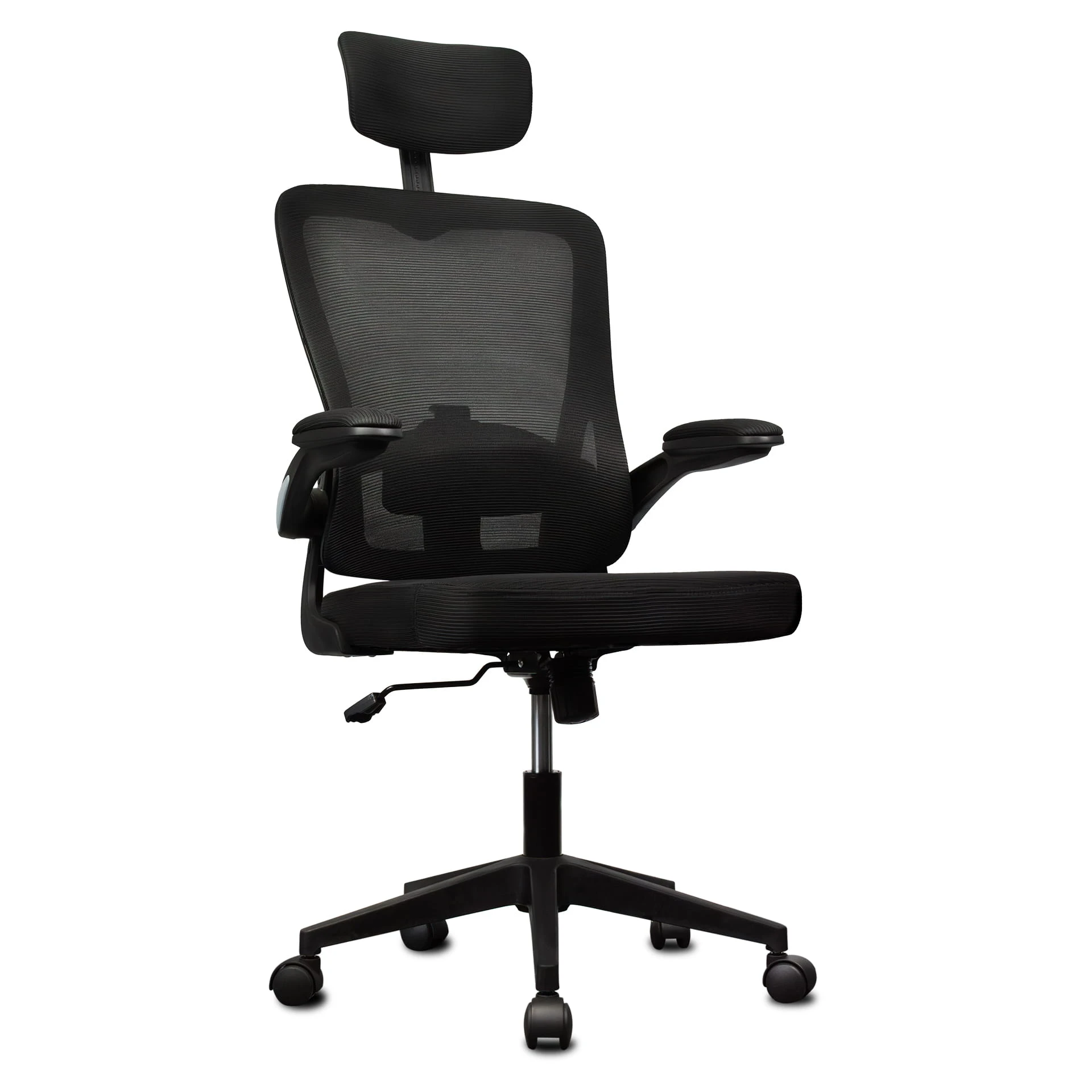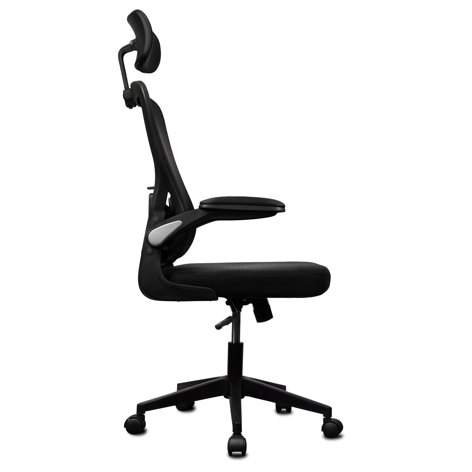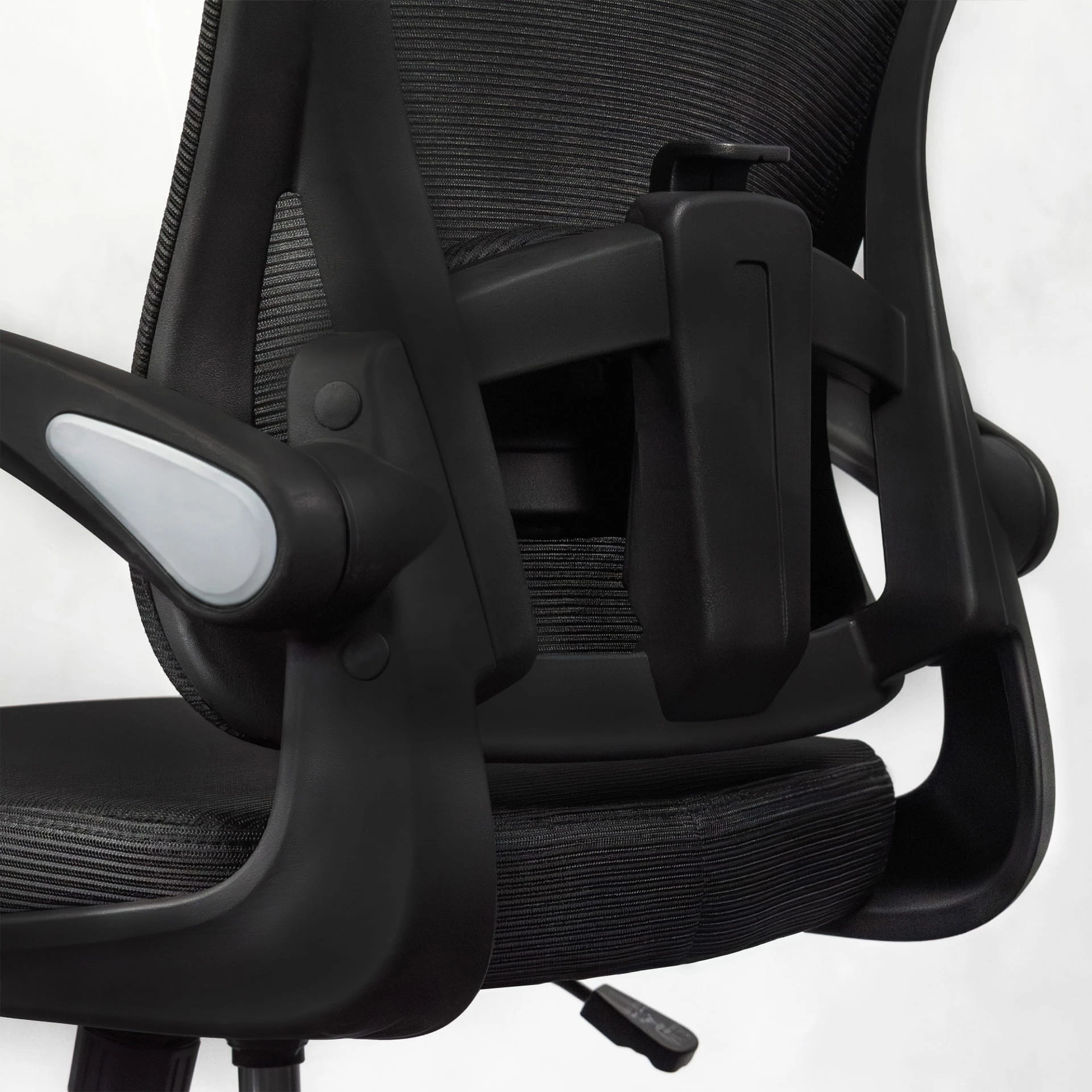 Składane podłokietniki umożliwiają głębokie dosunięcie fotela do blatu, oszczędzając przestrzeń. Mechanizm TILT zapewnia swobodę ruchów, a możliwość blokady oparcia pozwala na pełne skupienie podczas zadań.