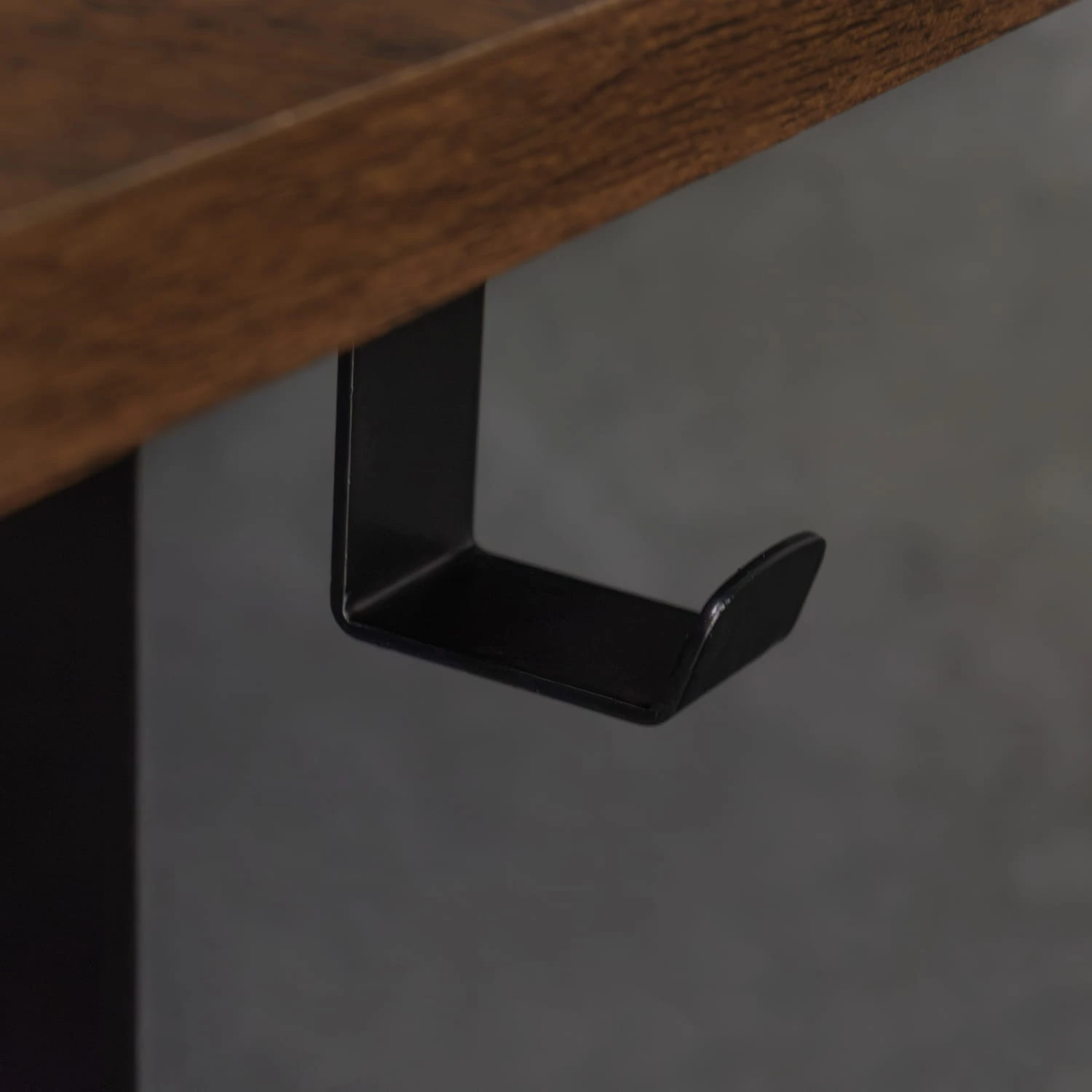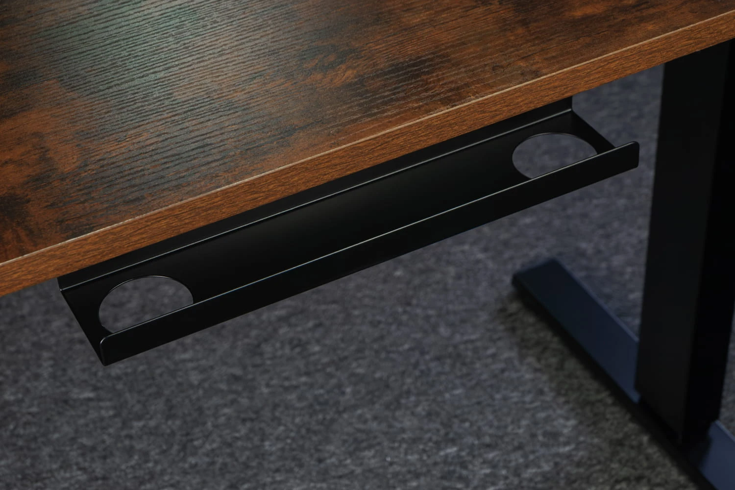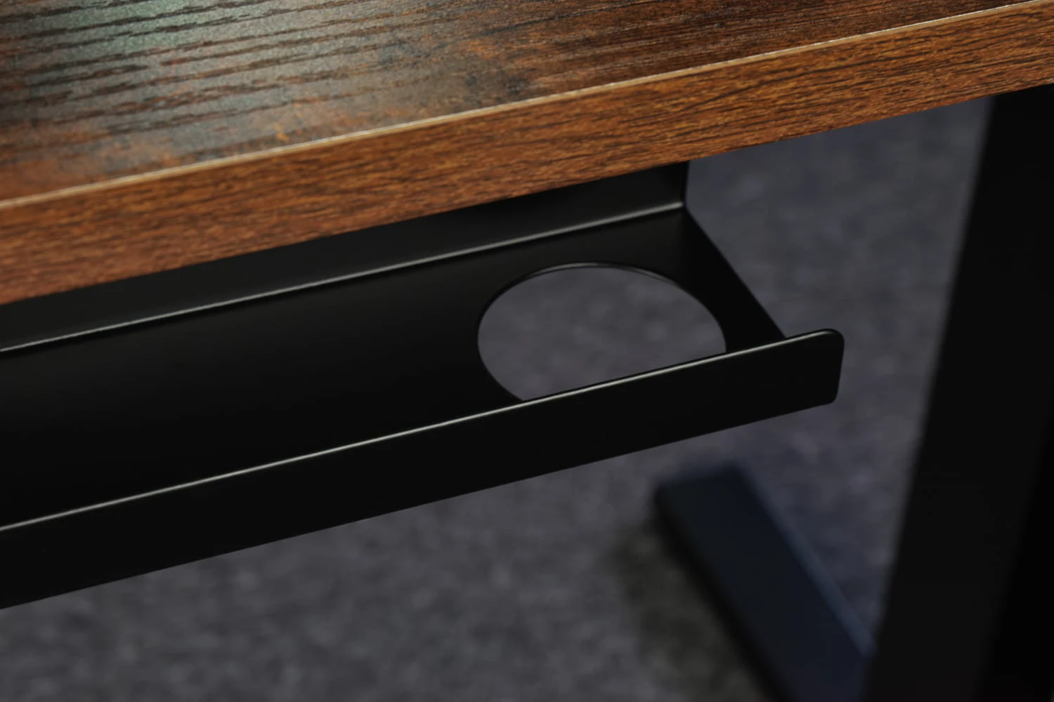 Wbudowane wieszaki na akcesoria oraz dedykowana taca na listwę zasilającą pozwalają na wzorowy porządek na blacie. Dyskretne zarządzanie kablami eliminuje wizualny chaos, sprzyjając koncentracji.