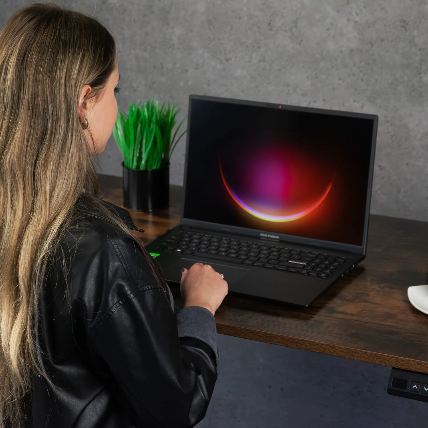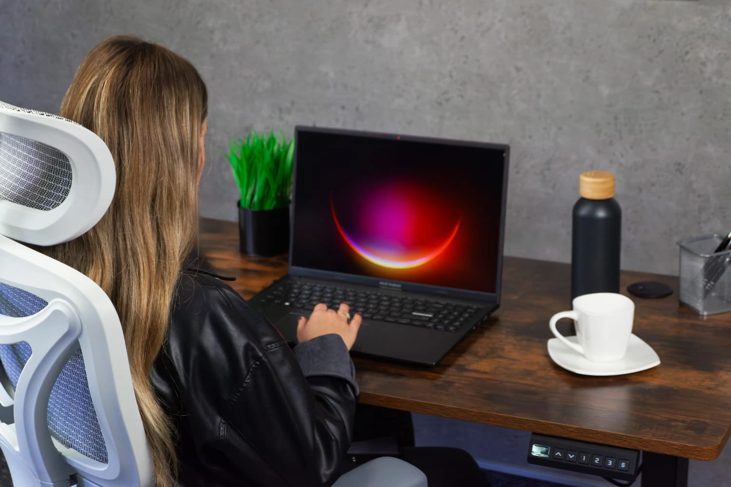 Silnik o prędkości 2.5 cm/s błyskawicznie dostosowuje pozycję blatu do Twoich potrzeb.