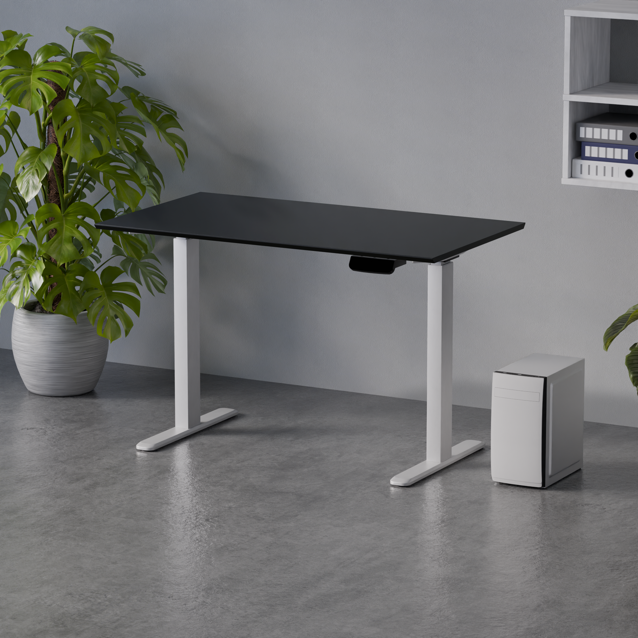 Blat wykonany z jednego elementu o wymiarach 120 na 67 cm i grubości 1,8 cm tworzy stabilną powierzchnię roboczą. Maksymalne obciążenie do 100 kg pozwala na korzystanie z rozbudowanych konfiguracji sprzętowych. Kontroler z wyświetlaczem umożliwia zapisanie trzech ustawień wysokości i ich szybkie przywołanie. Wbudowany port USB o mocy 10 W pozwala ładować urządzenia bezpośrednio przy biurku.