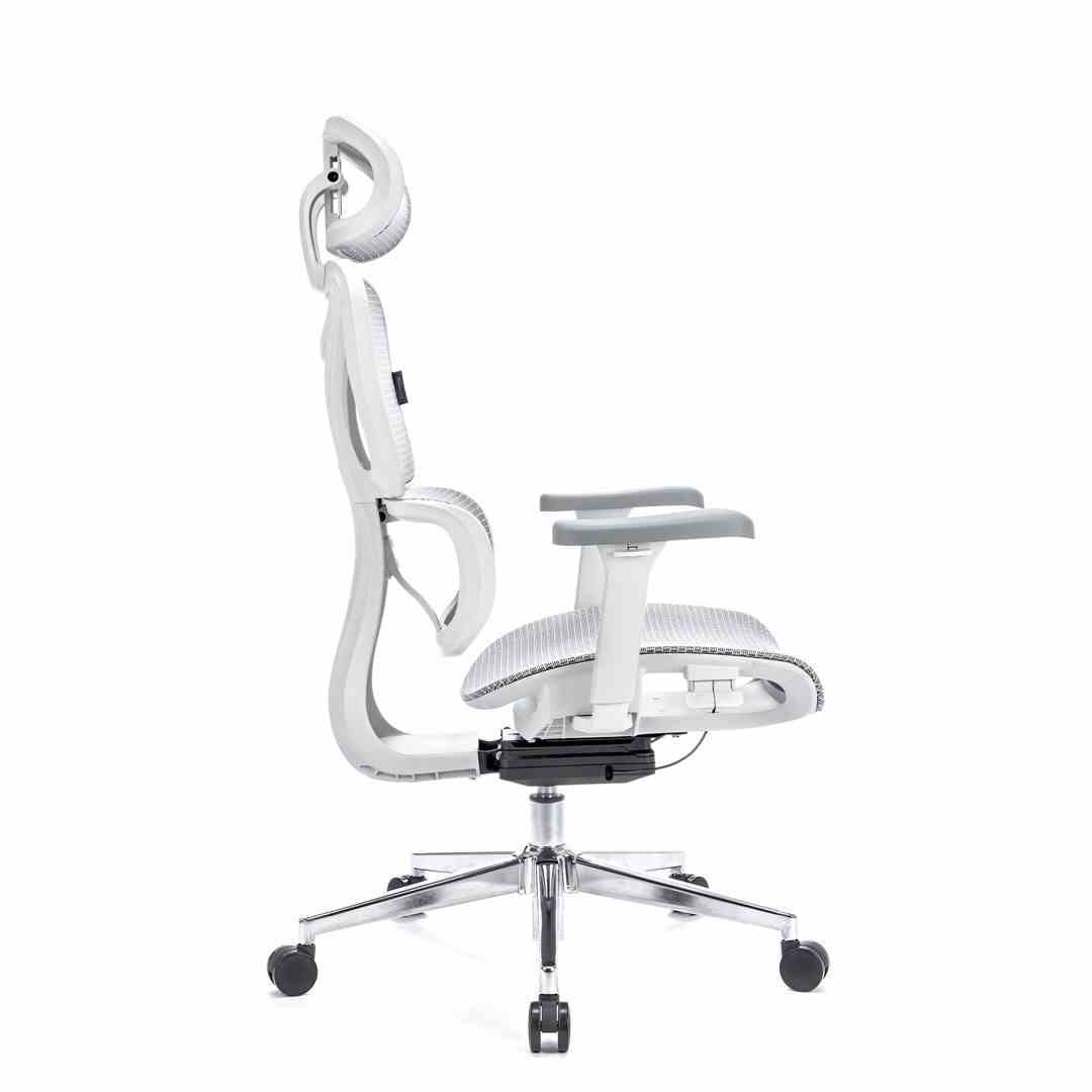 Fotel oferuje zaawansowaną regulację wszystkich kluczowych elementów. Możliwa jest regulacja wysokości i głębokości siedziska, kąta nachylenia oparcia oraz ustawienia zagłówka. Adaptacyjne podparcie lędźwi dopasowuje się do krzywizny kręgosłupa, zapewniając stałe wsparcie. Całość została zaprojektowana z myślą o maksymalnym komforcie.