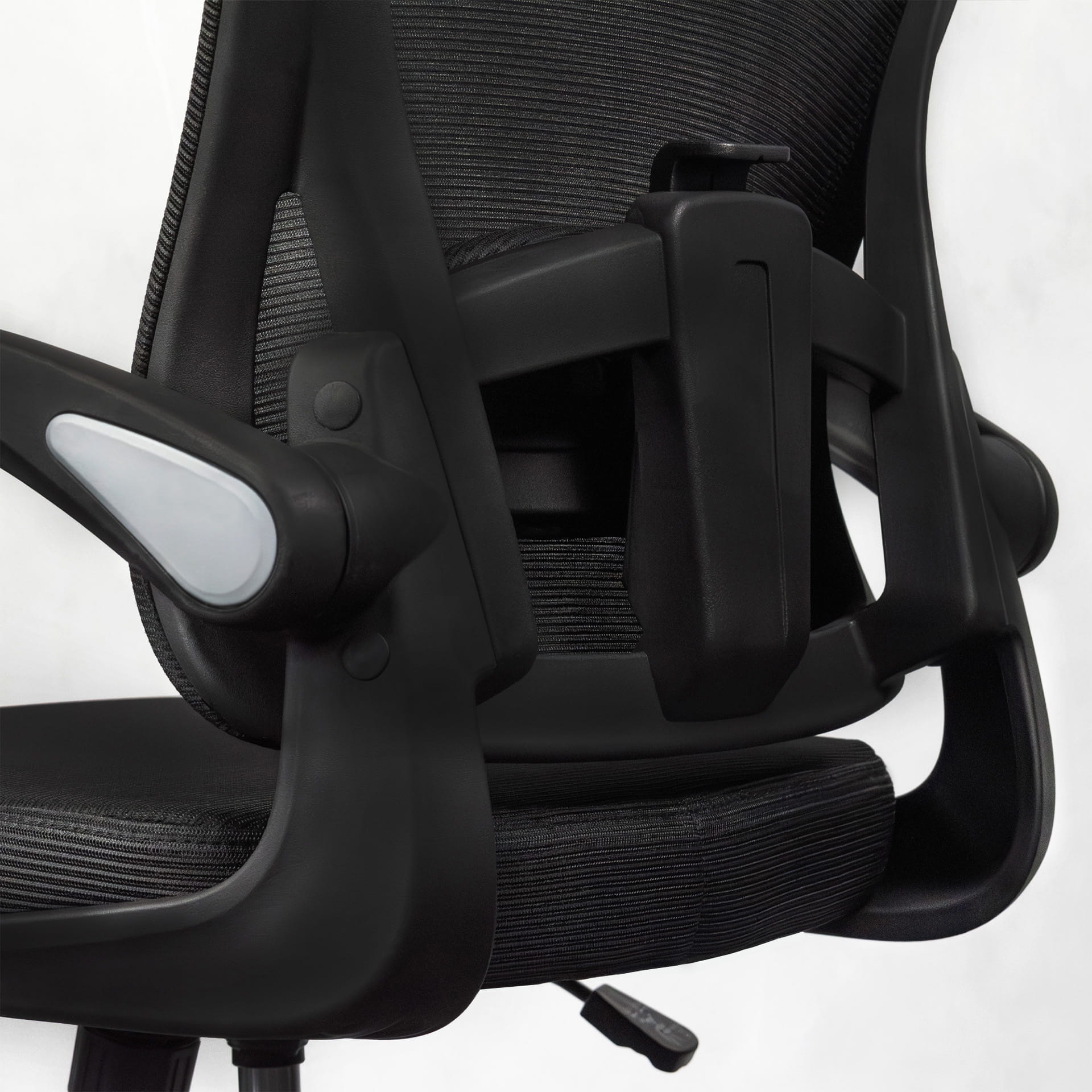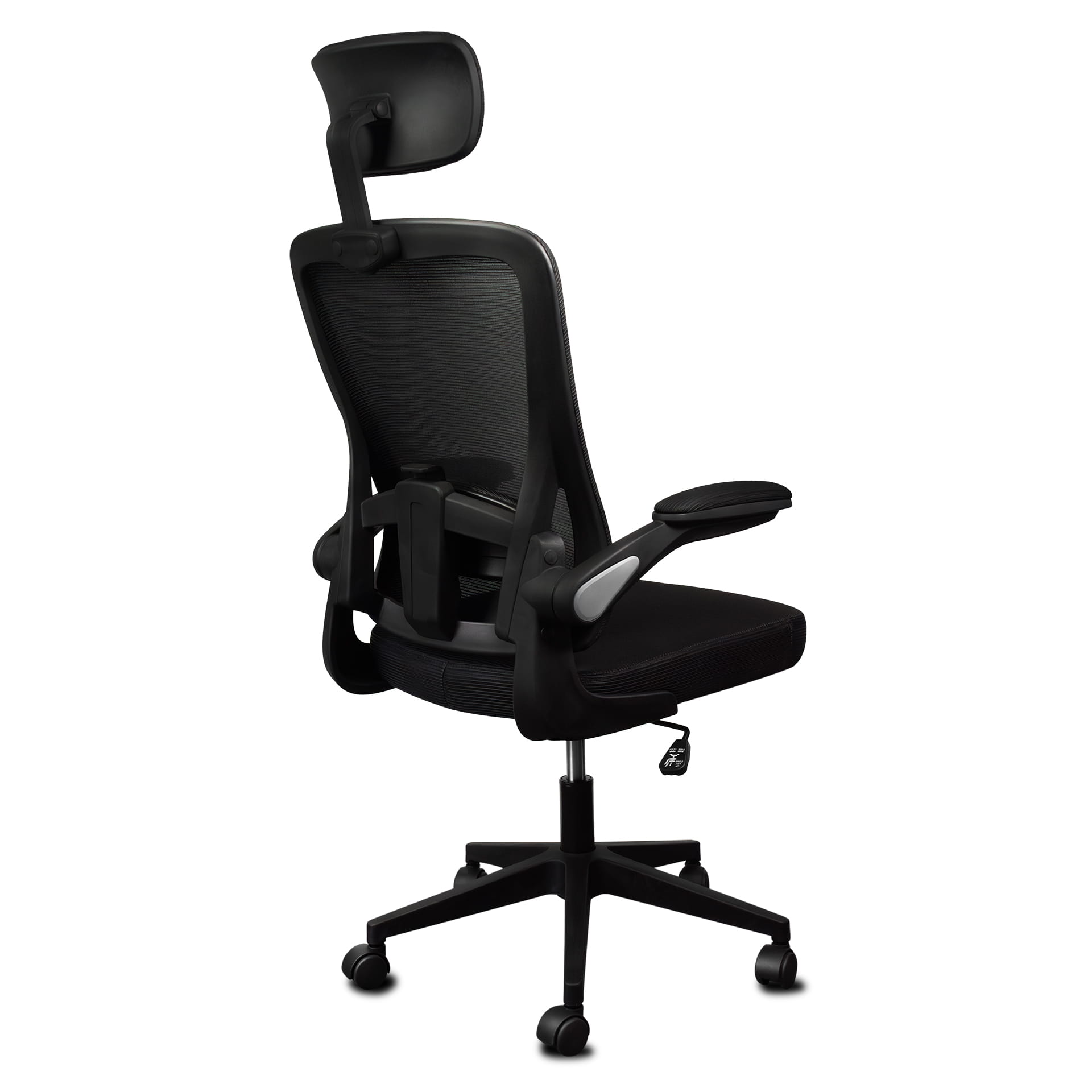 Mechanizm odchylania do 135 stopni umożliwia zmianę pozycji i chwilę odpoczynku w trakcie pracy. Blokada pozycji pionowej pozwala utrzymać stabilną pozycję podczas pracy. Składane podłokietniki umożliwiają wygodne dosunięcie się do biurka. Fotel posiada udźwig do 120 kg i stabilną konstrukcję do codziennego użytkowania.